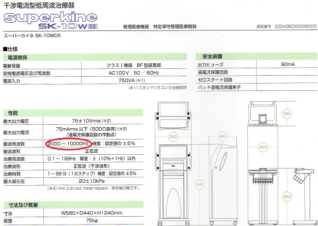 この干渉電流型低周波治療器は2000Hz〜10000Hzの