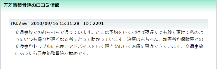 「交通事故施術」って書いてた事を思い出し行ってみた。顔を覚えてくれ