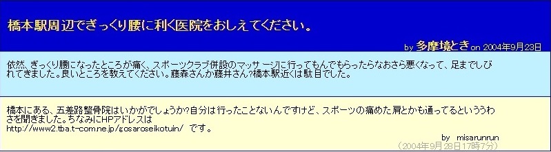 「橋本駅周辺でぎっくり腰に利く医院をおしえてください。」 についての書き込み。